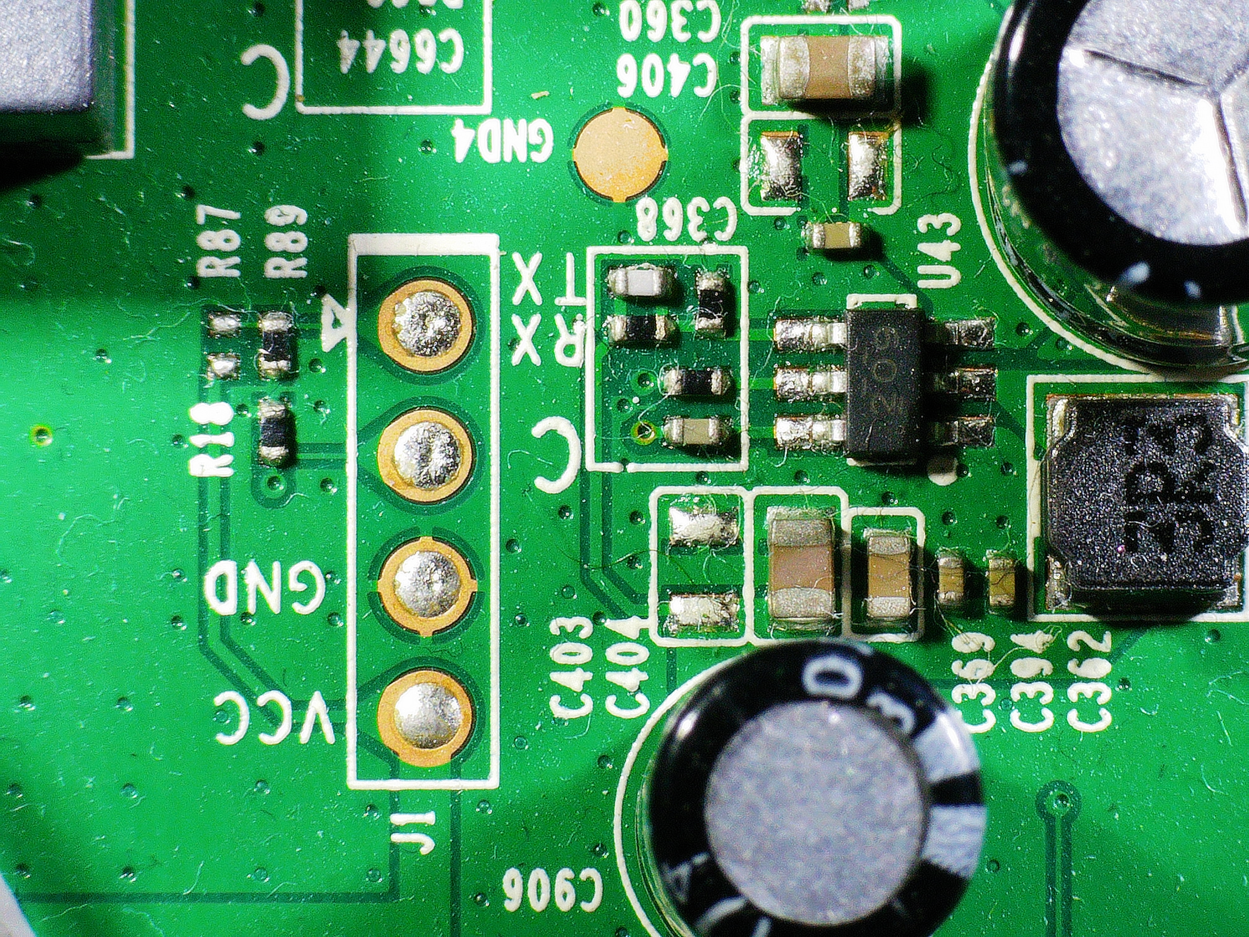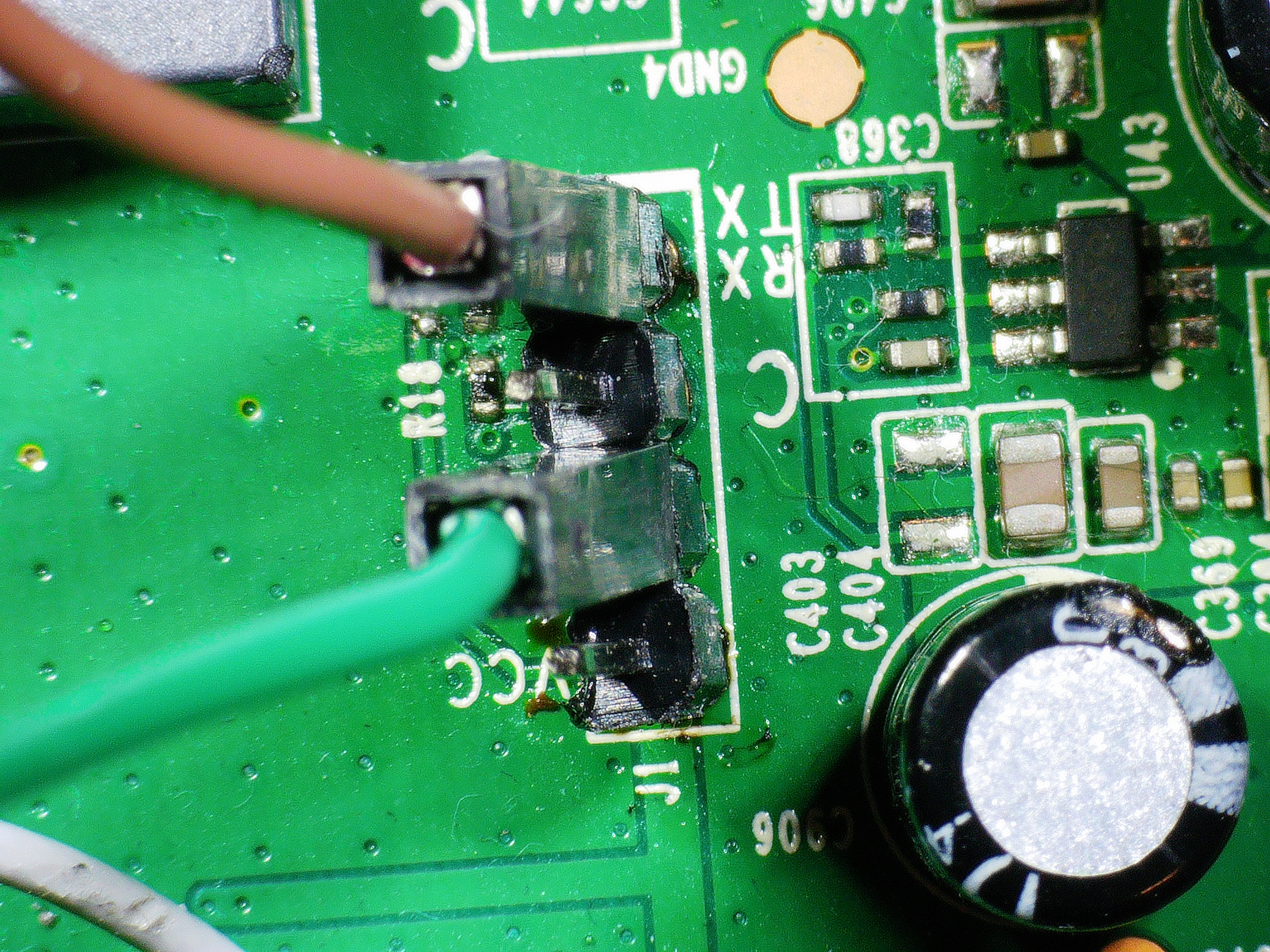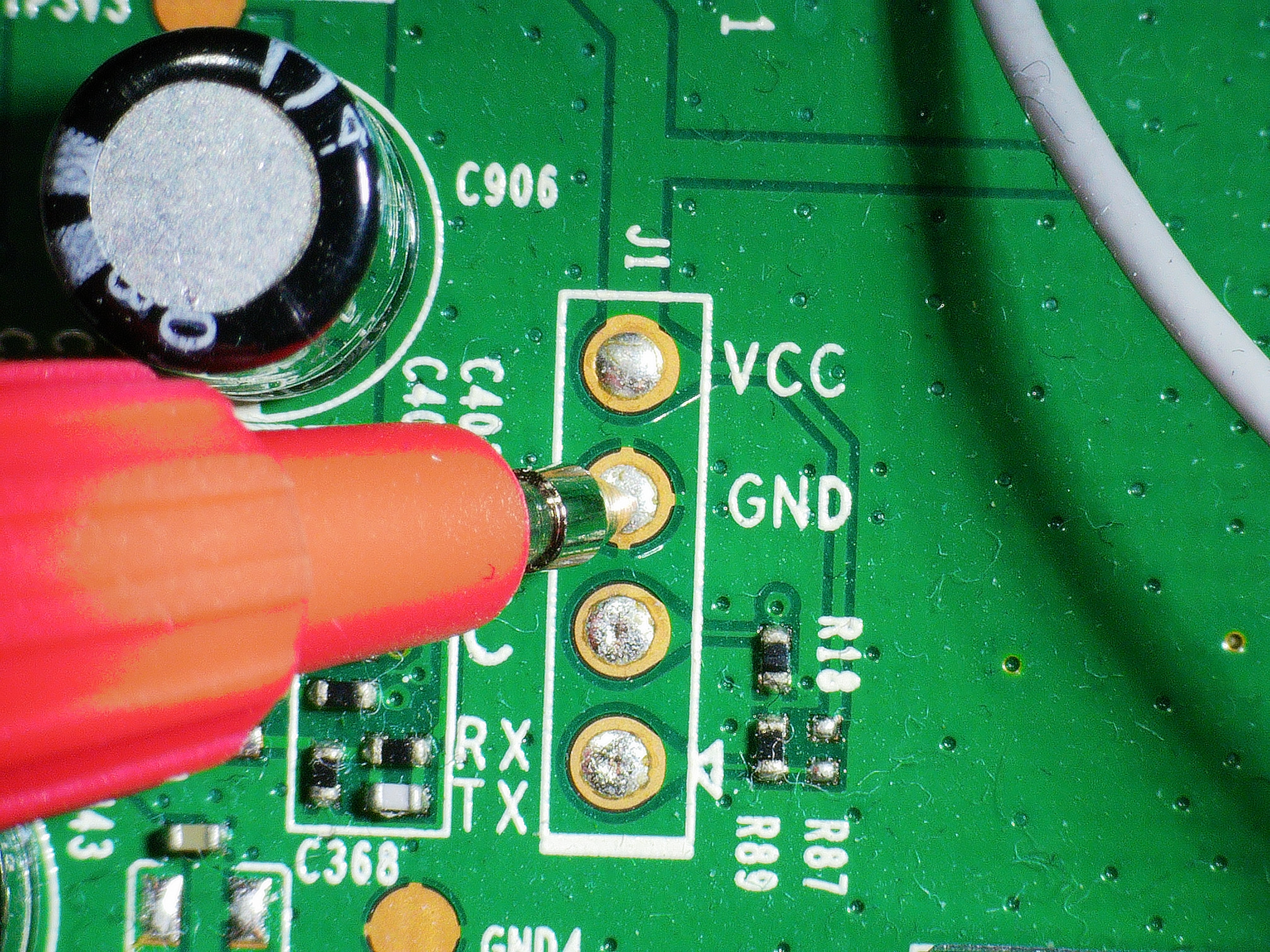 By testing with the multimeter we can observe how it indeed matches the chip’s rx and tx of the UART protocol. On the rx we see information activity when we power on the router, however on the tx we don’t see anything.