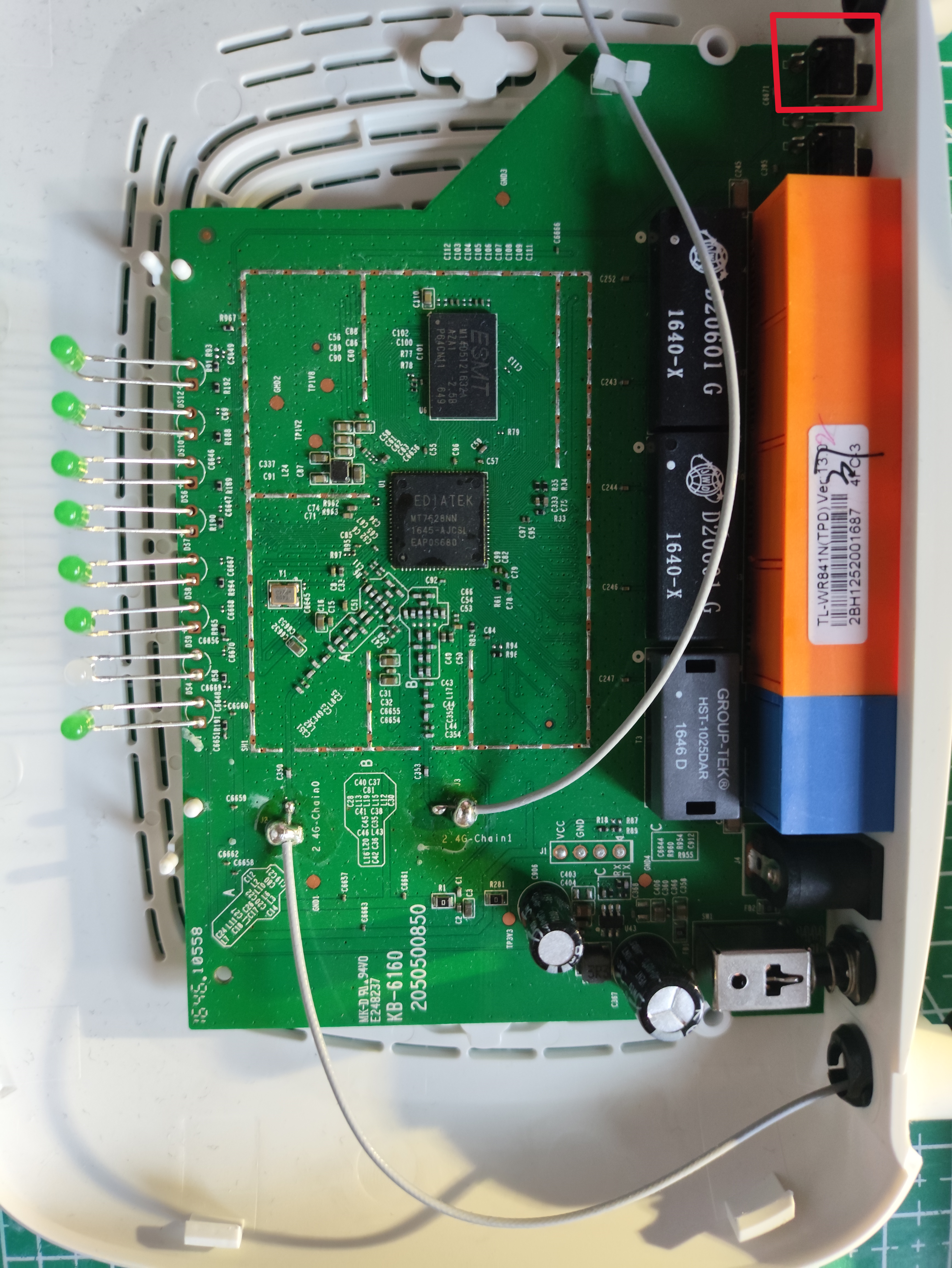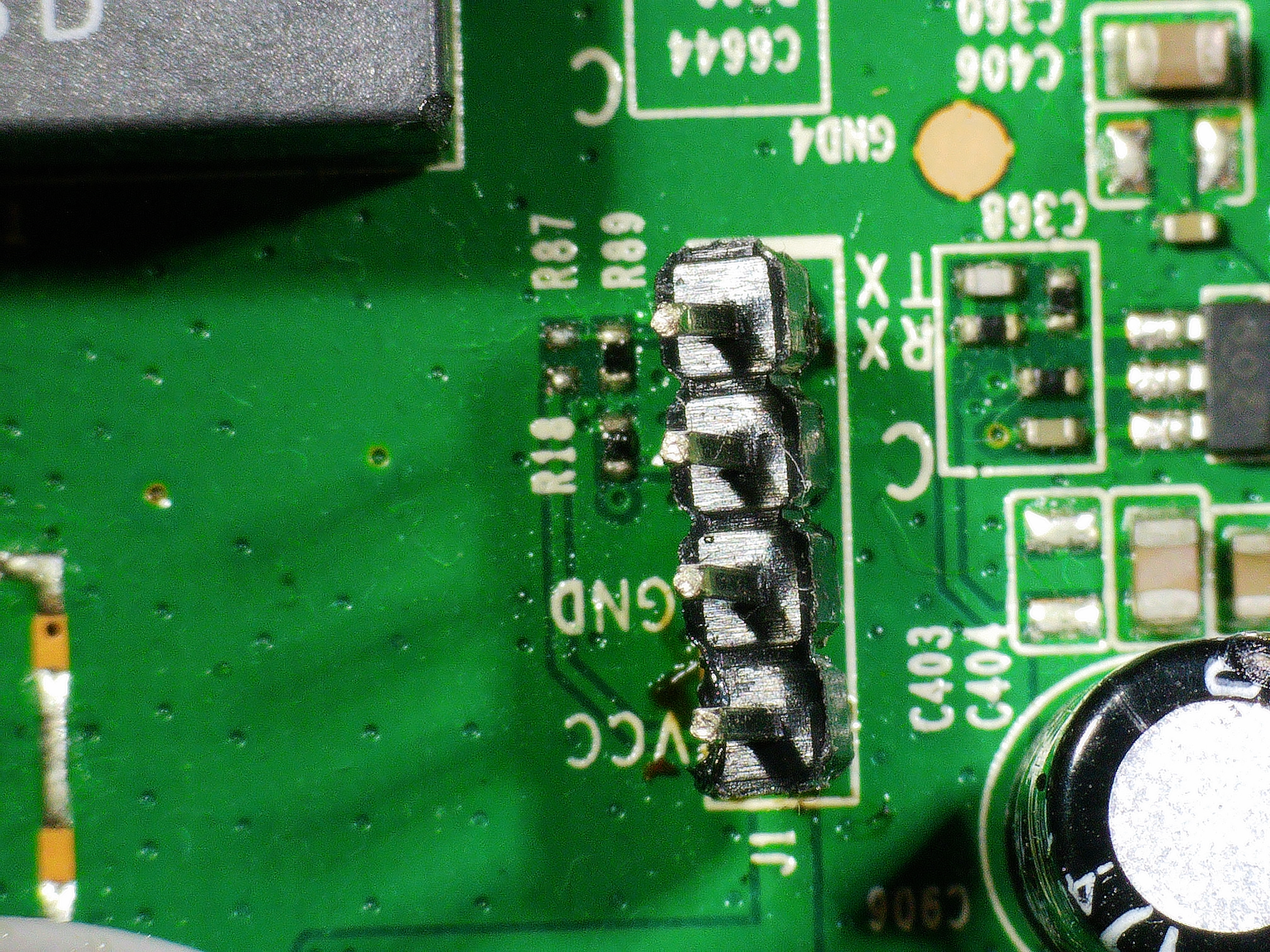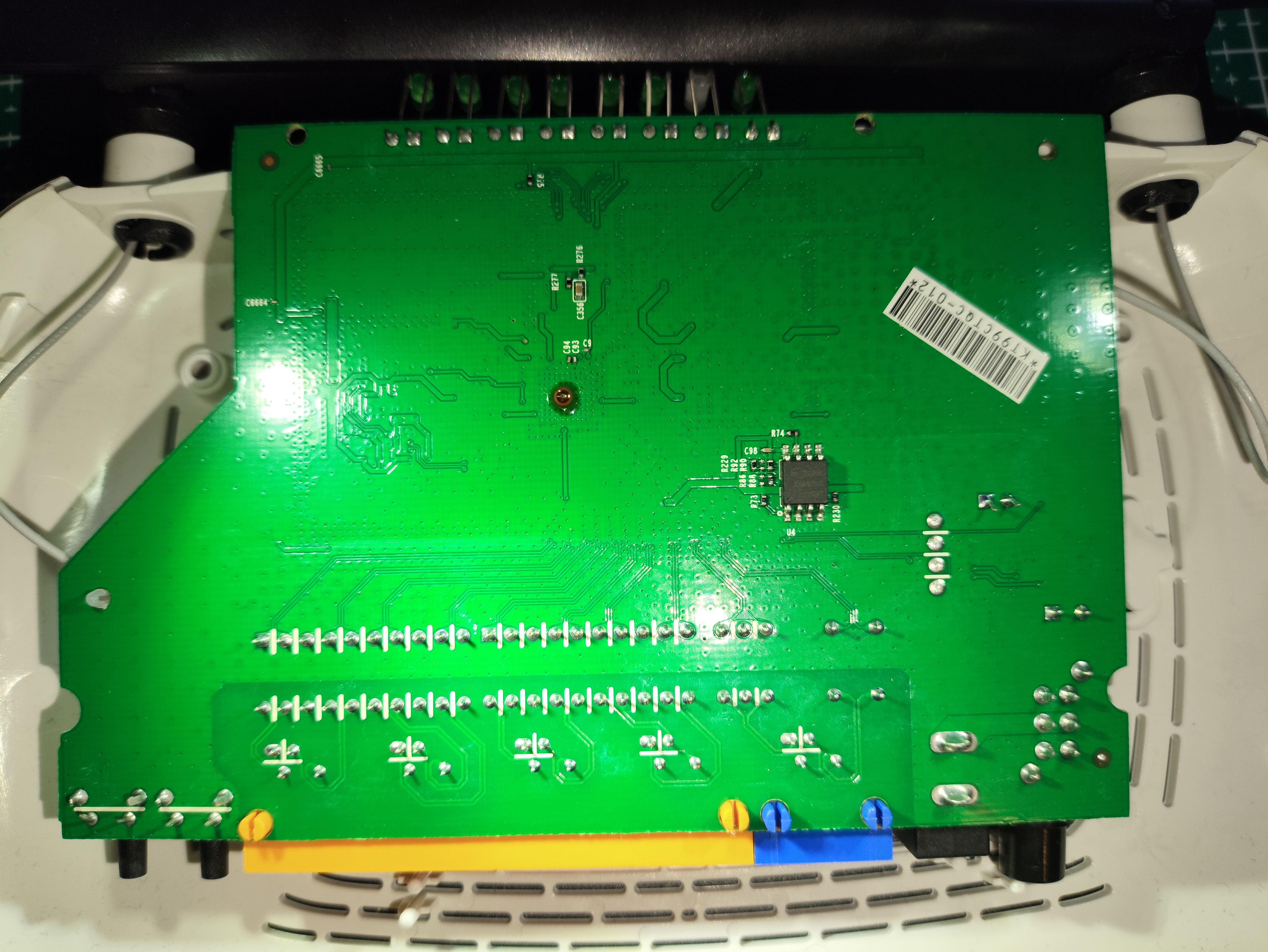 By testing with the multimeter we can observe how it indeed matches the chip’s rx and tx of the UART protocol. On the rx we see information activity when we power on the router, however on the tx we don’t see anything.
