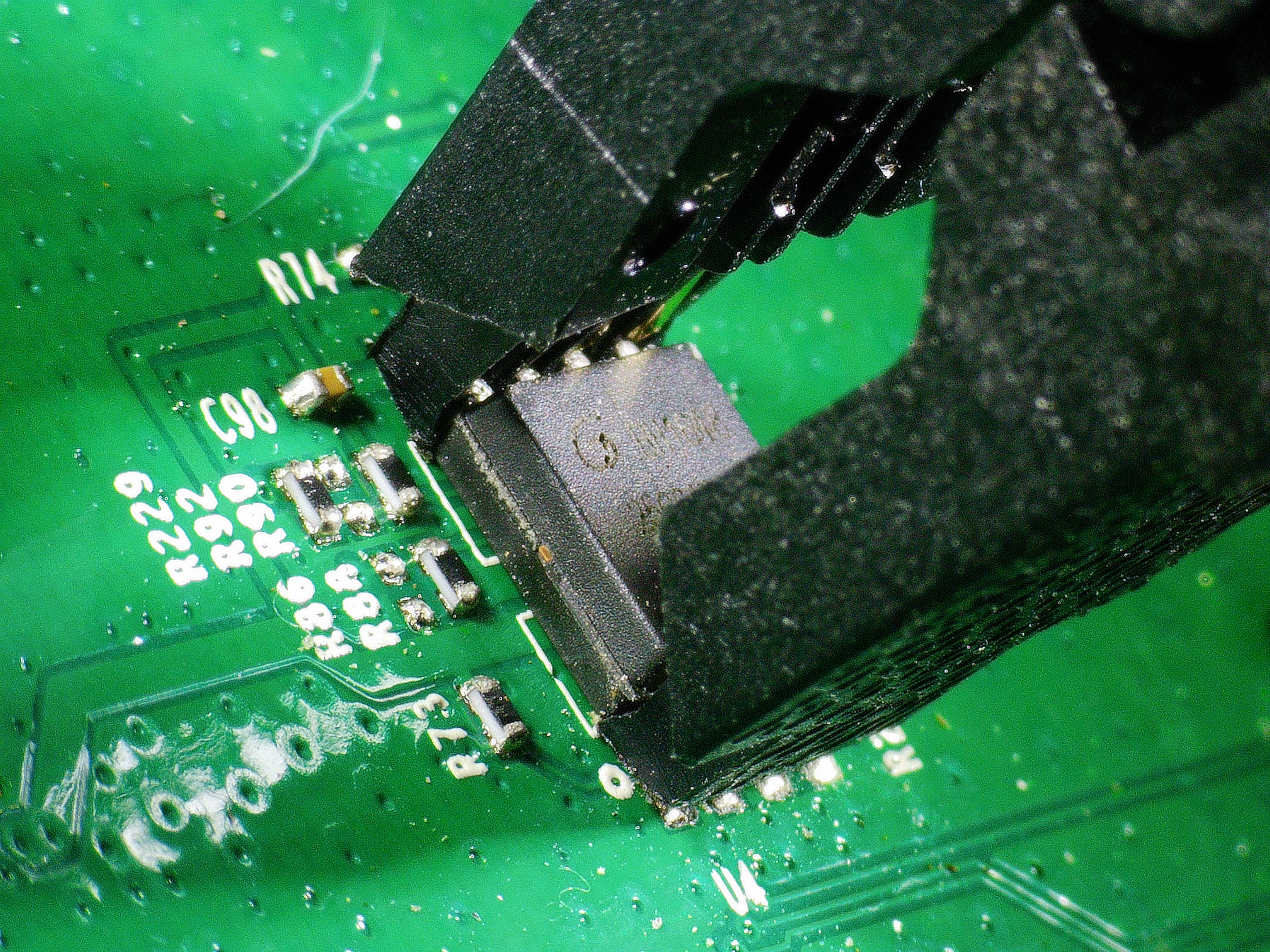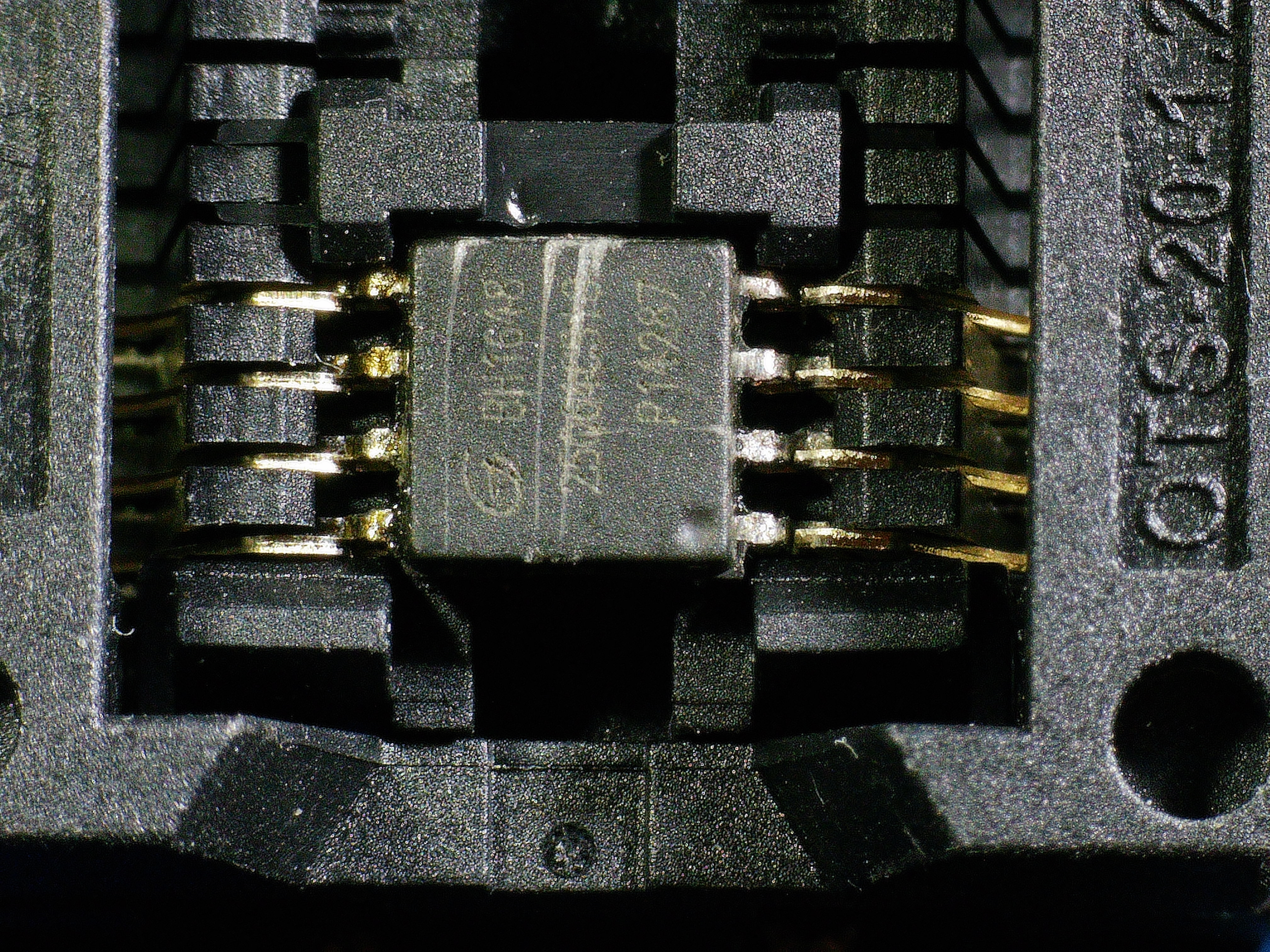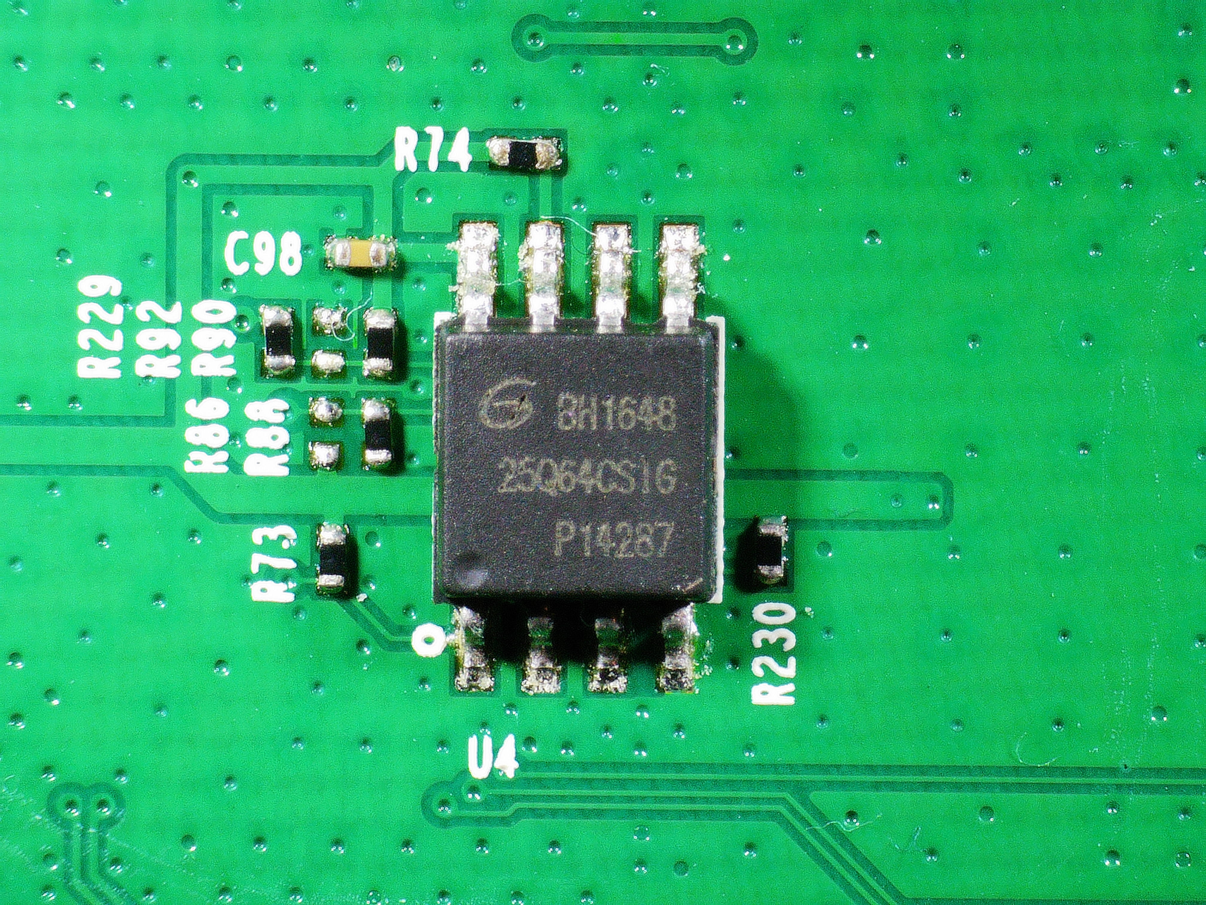 If we look at the back of the chip, we will see that it has a flash memory, responsible for loading the operating system: