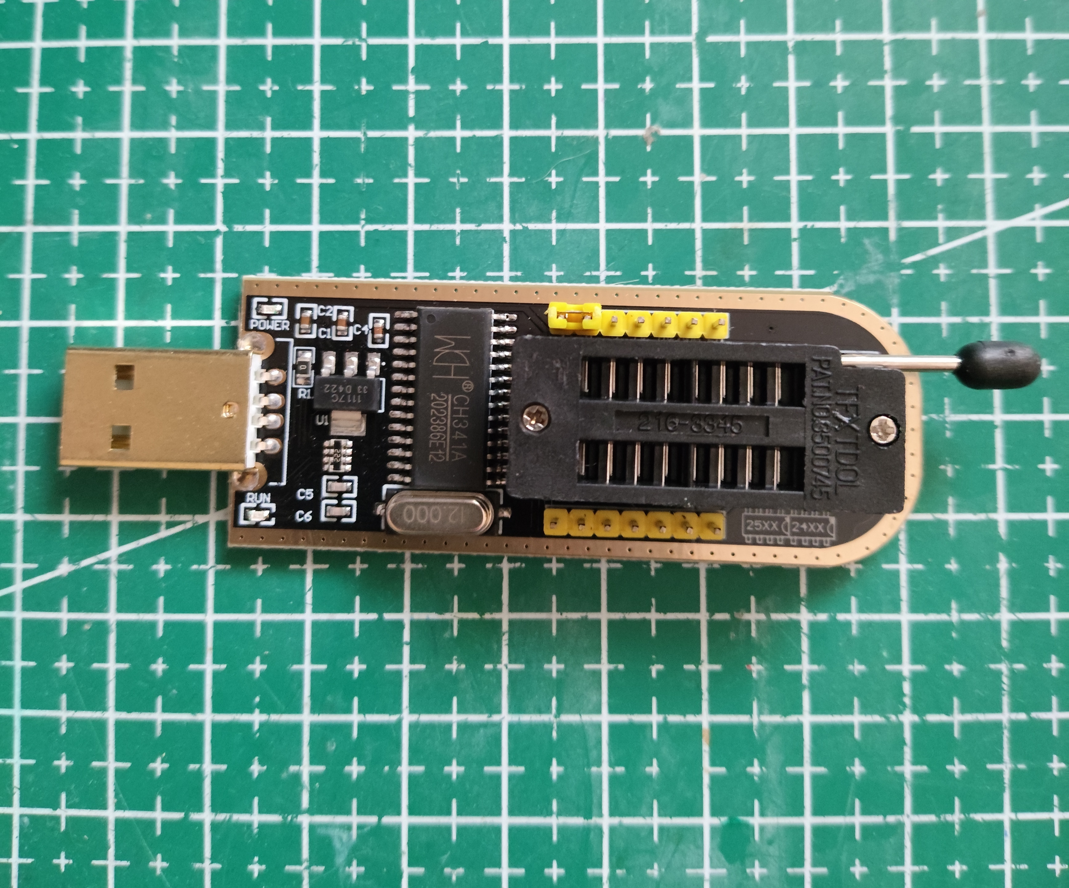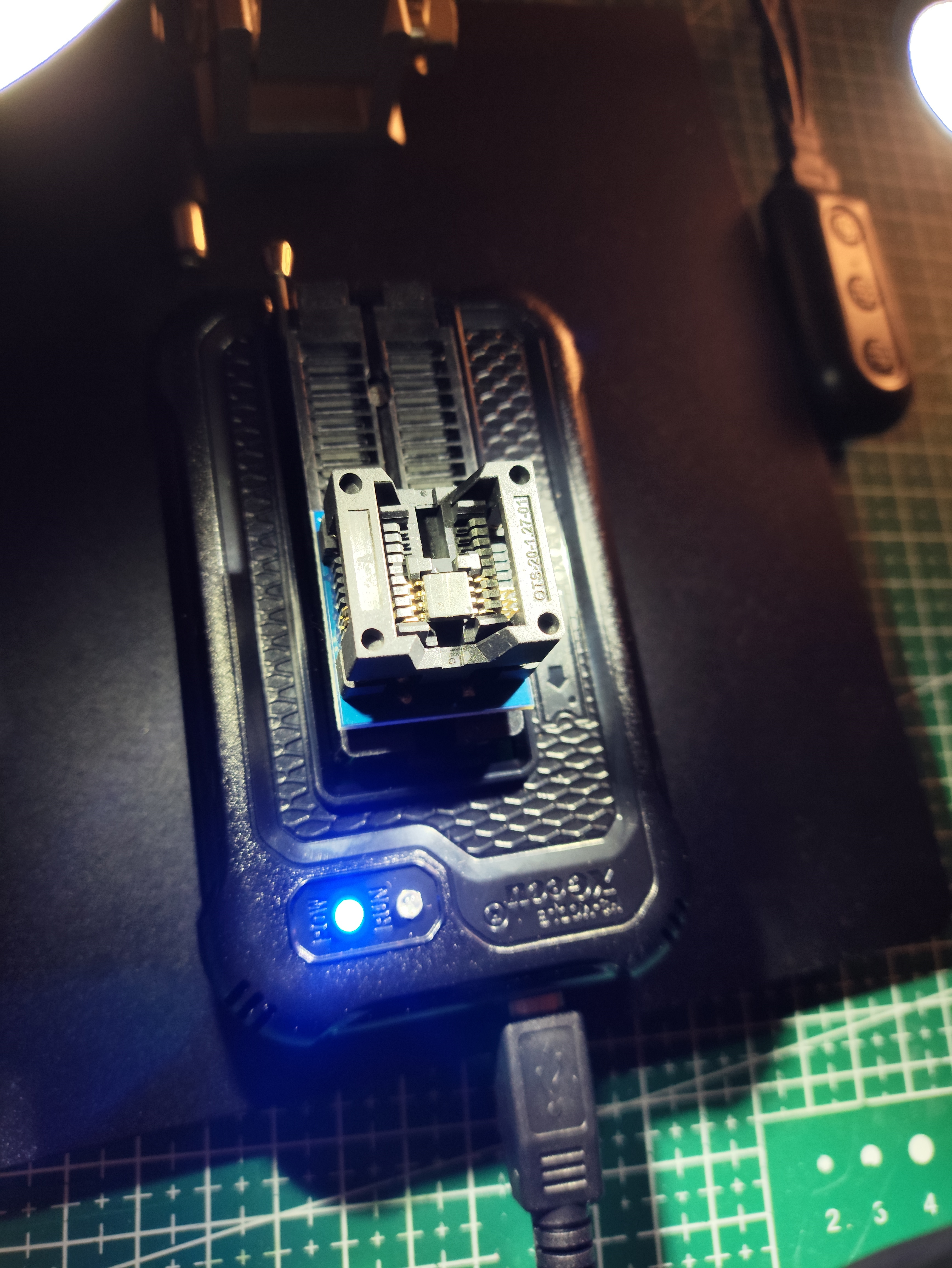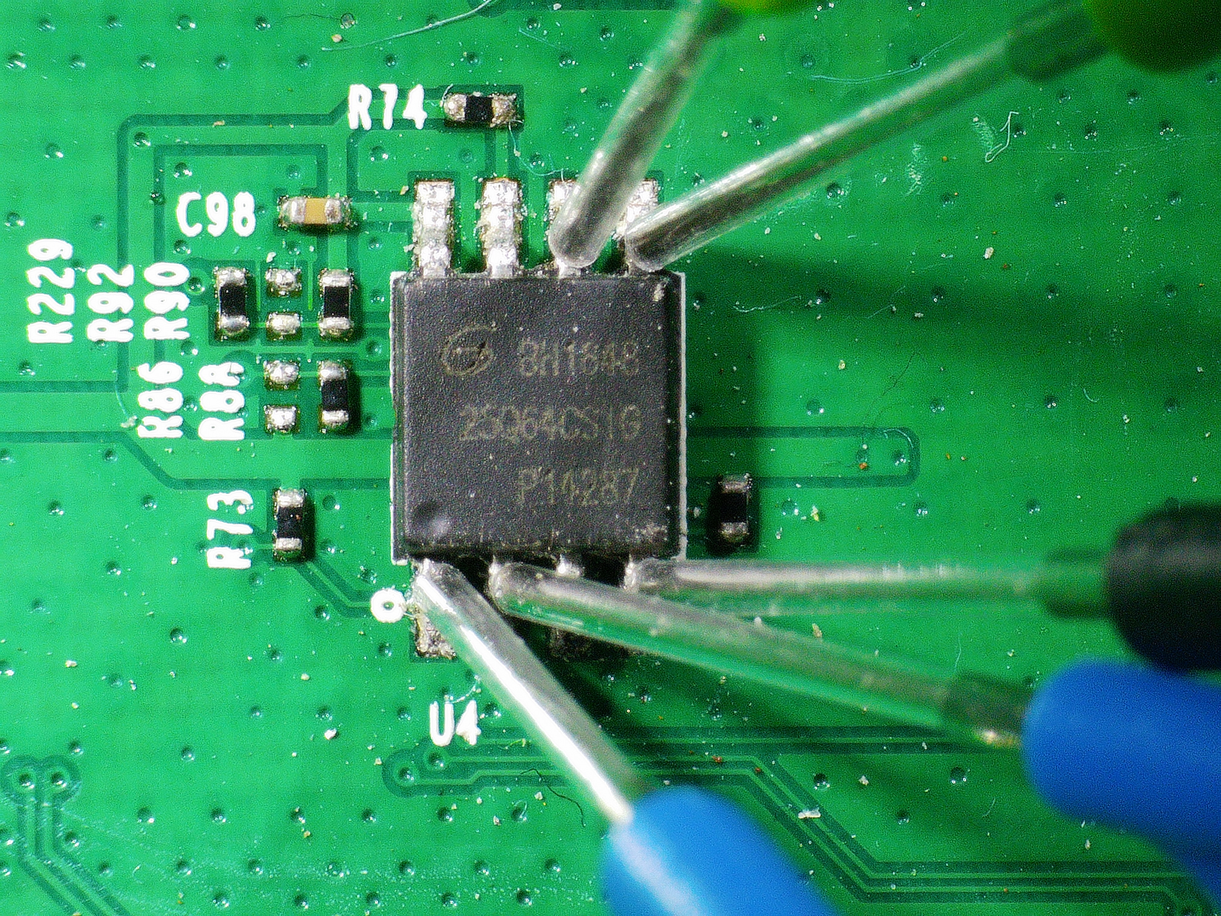 If we look at the back of the chip, we will see that it has a flash memory, responsible for loading the operating system: